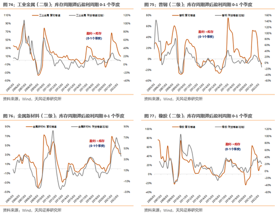 对于产业链上下游的行业来说,库存周期多数都体现为滞后项,但不同行业的库存周期与盈利周期的错位时长有较大差异,有些基本同步、有些滞后1个季度或2个季度。