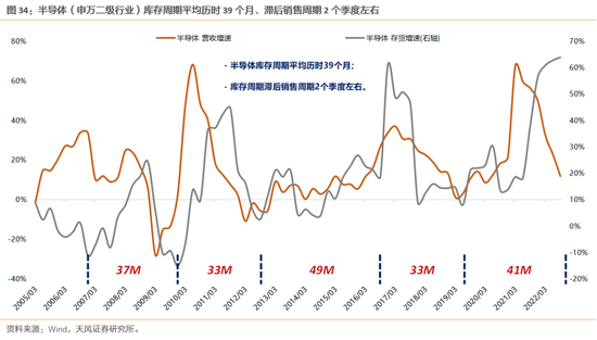 (2)本轮半导体国内销售增速的高点在21年8月,目前已下行了15个月;全球销售增速的高点在22年2月,目前已下行了9个月。按40个月左右的周期时长推算,预计本轮半导体销售的周期拐点或于23Q1-Q2出现。
