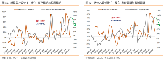 (3)本轮半导体库存高点可能在22Q3,但细分行业有差异,模拟芯片库存高点在22Q2、数字芯片库存高点预计在22Q3,而分立器件库存高点在22Q1但Q3反弹。当前仍处于主动降价去库存阶段,企稳时点依赖于需求复苏进度;另外,按库存滞后销售2个季度左右的规律,本轮库存低点可能要到22Q2之后。