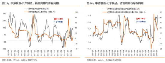 ② 中游制造业库存周期滞后于销售周期较明显,1-2个季度之间;
