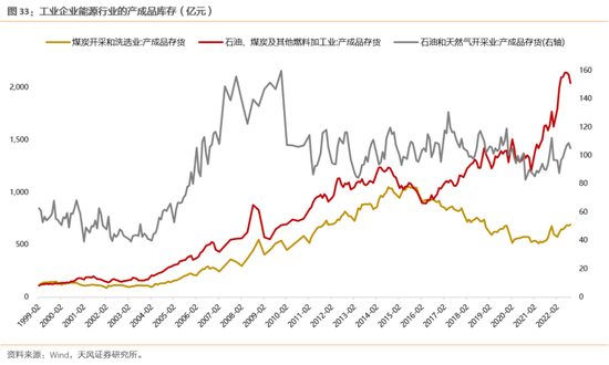 当前宏观工业企业库存数据显示,上游周期品行业普遍库存位置比较高,特别是能源类的,其中,煤炭开采、石油开采、黑色金属、有色冶炼、石油煤炭加工的库存增速位于历史的81%、66%、99%、74%、85%分位。这背后可能反映的是能源类周期目前处于景气周期顶部,因为周期品的库存周期仅略滞后于盈利周期,当前库存周期跟随盈利周期开始走弱。