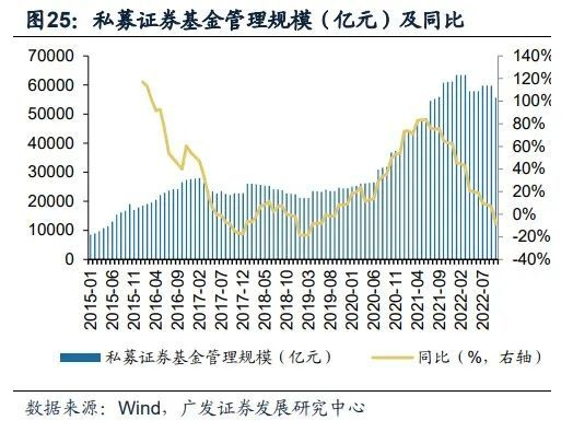 私募类规模稳定性较公募产品偏弱,受业绩波动影响业绩弹性更大。据基金业协会披露,2022H1证券公司资管规模达到7.68万亿元,较年初下滑6.8%;截止10月底,私募证券基金管理规模达到5.56万亿元,较年初下滑9.2%。