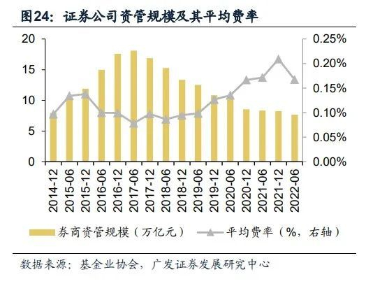 资管端短周期下有望盈利反转,券商资管转型加速分化发展;财富管理端费率调降的悲观预期已被消化,证券公司积极变革抢占市场份额,综合服务能力优势有望凸显提升竞争壁垒。