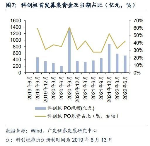 注册制后板块融资项目数及项目规模显著提升,而后保持常态化发展。2020年8-12月,创业板试点注册制后,首发上市公司达到64家(同比+178%),募集资金663亿元(同比+448%)。2019年7-12月,科创板首发上市公司达到70家(占全市场比重51.1%),募集资金824亿元(占全市场比重 42.7%)。