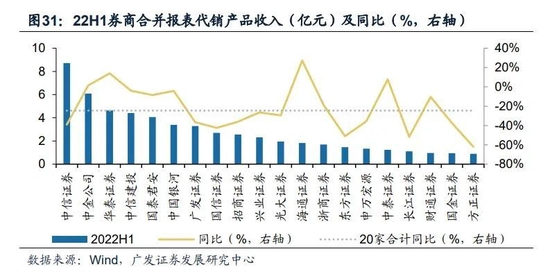 产品与服务上,产品配置持续发力,买方投顾深入转型,综合服务体系建设更进一步。市场表现拖累产品新发以及净值型表现,进而影响私募产品销售的业绩分成,而配置性的投顾服务、多业务协同的综合服务更具稳定性。2022H1,前20家券商代销收入合计下滑25%,其中,中金公司6.08亿元,同比+1.5%;华泰证券4.63亿元,同比+14.1%;中信建投4.41亿元,同比-4.0%;中国银河3.39亿元,同比-4.2%。据半年报披露显示,华泰证券、中信证券、东方证券公募基金投顾规模超过百亿元。截止2022H1,中信证券公募基金投顾累计签约资产超百亿元、面向高净值客户配置的各类私募产品保有规模超1800亿元。中国银河发力高净值客群,探索建立专注于高净值客户开拓和经营的私人银行类客户经理体系,完善从了解客户到资产配置的闭环服务体系,针对客户个性需求提供场景化、差异化、定制化的资产配置方案。