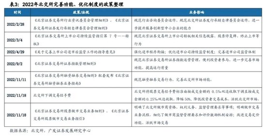 2022年11月21日,证监会主席易会满在2022金融街论坛年会上的主题演讲时表示,“下一步,我们将坚守初心使命,深化新三板改革创新,扎实推进北交所高质量扩容。统筹推进投资端制度改革,丰富投资者类型,推动混合交易、融资融券等制度落地实施,提升市场流动性;完善债券、基金、资产证券化、指数等产品体系,进一步增强北交所市场功能和活力,以更大力度打造服务创新型中小企业主阵地。”