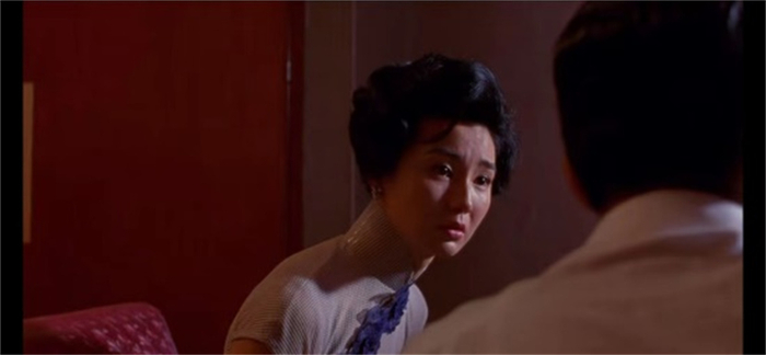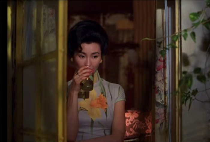 影片多次出现两人的擦肩而过。慢速镜头加上梅林茂的配乐,华尔兹节奏打底,像极了两人之间的情感进退,大提琴旋律突出,放大了人物与周围环境的格格不入和内心怅然。“我们不能像他们那样”,是苏丽珍的道德准则、世俗顾忌和逃避借口,张曼玉的过人之处在于能够通过极其细腻的表演和瞬间情绪变化的拿捏,对人物的丰富内心做出不同层面的展现。前一秒还漫不经心地用手指有意无意拨弄对方皮带,扮演挑逗别人丈夫的妻子,后一秒立刻陷入深深的不耻、自怜和哀怨。张曼玉在影片中的二十余套旗袍造型美不胜收,但与华美旗袍包裹下步态摇曳的身姿相比,她的眼睛更动人心魄,犹如孤夜星辰,璀璨夺目。苏丽珍在她的演绎之下,充满了一种无关肉欲的性感。她在外人面前的自我克制、谨小慎微和在周慕云面前的自然纯真、全然感性,形成了关乎“爱”的对比。她的性感是天真纯洁的,但同时又令人觉得遥远而脆弱,苏丽珍在情的滋生、绽放和自省、犹豫之间的摇曳充满了迷人的魅惑。