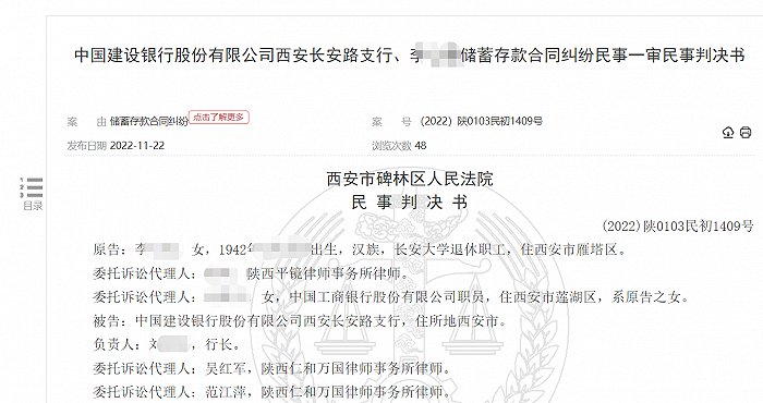 近日,裁判文书网公布了一起案件,八旬老人李某的二百多万存款“不翼而飞”,老人与中国建设银行股份有限公司西安长安路支行(以下简称建行西安长安路支行)由此发生纠纷,其要求建行赔偿存款损失约146.82万元并支付利息,法院一审判决建行赔偿老人约两成损失。