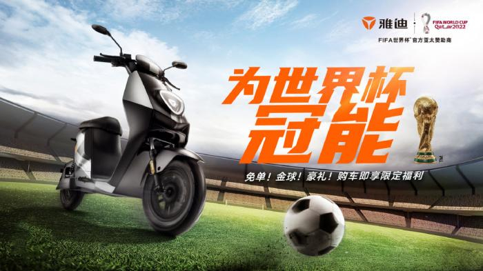 卡塔尔世界杯揭幕前一天,雅迪官宣,成为世界杯亚太赞助商。
