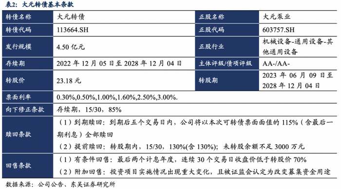 ■大元转债(113664.SH)于2022年12月5日开始网上申购:总发行规模为4.50亿元,扣除发行费用后的募集资金净额用于年产300万台高效节能水泵及年产400万台民用水泵技改项目(其中:分为年产 400 万台民用水泵技改项目、年产 300 万台高效节能水泵扩能项目)和补充流动资金项目。