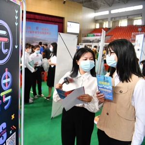 高校招聘会现场,人头攒动