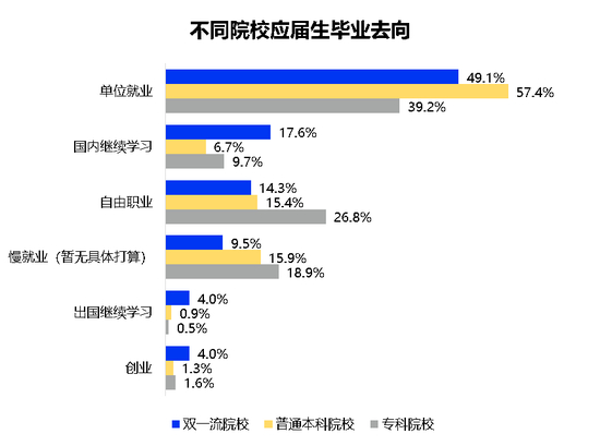 而此前,BOSS直聘研究院也指出,双一流高校毕业生的期望薪资平均在8000~10000元以上。相比之下,非双一流高校的应届生的期望月薪仅在5000元左右,只有名校生的一半。