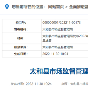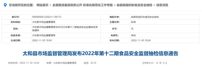 安徽省太和县市场监督管理局发布2022年第十二期食品安全监督抽检信息