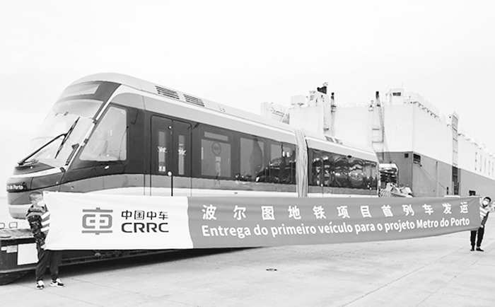 由中国中车研制的我国出口欧洲城轨列车在天津港装船运往葡萄牙波尔图,这是我国高端轨道交通装备服务欧洲市场新的里程碑。