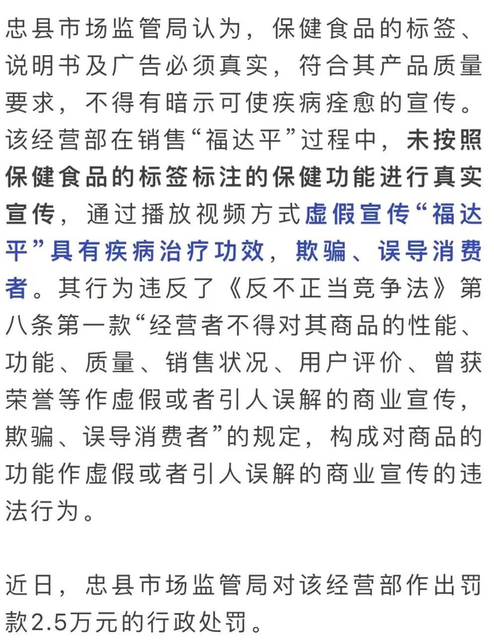 视频讲座宣称保健食品“福达平”是心脏病克星,“福诺有品”被罚!