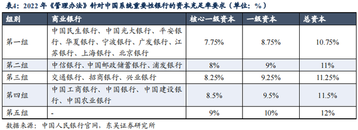 为配合《巴塞尔协议》,中国银监会在2012年制定了《管理办法》,构建起中国的商业银行资本监管体系。文件现已进入修订阶段,预计《巴塞尔协议》历史版本中尚未实行的相关规则及最终版中的部分修订内容将会依据中国国情被纳入修订后的《管理办法》中。