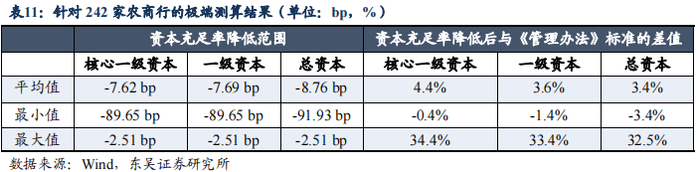针对城商行和农商行的测算:极端测算结果表明,多数城商行不会因权重变动而改变对二级资本债的投资需求,少数资本充足率处于监管标准临界值的农商行可能会调整二级资本债持仓,但涉及规模较小,难以引起市场显著波动。