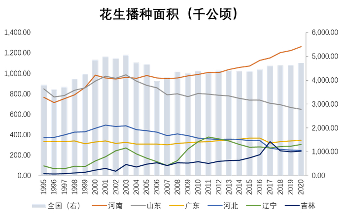 从近几年的国内花生供需平衡表来看,需求逐渐进入刚性阶段,花生供应对于花生价格的主导作用加强,分析花生供应格局对于预测花生价格走势具有举足轻重的作用。