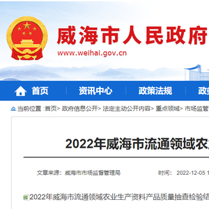 2022年山东省威海市流通领域农业生产资料产品质量抽查检验结果公示