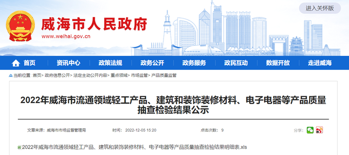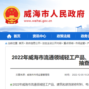 山东省威海市公示2022年流通领域轻工产品、建筑和装饰装修材料、电子电器等产品质量抽查检验结果