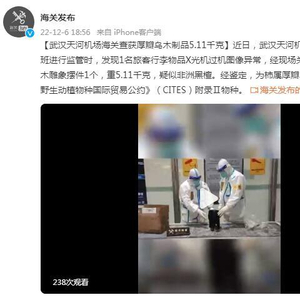 武汉天河机场海关查获厚瓣乌木制品5.11千克