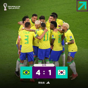 12月6日3时,2022年卡塔尔世界杯1/8决赛,巴西队对阵韩国队。最终,巴西4-1击败韩国,晋级8强,1/4决赛将对阵克罗地亚。