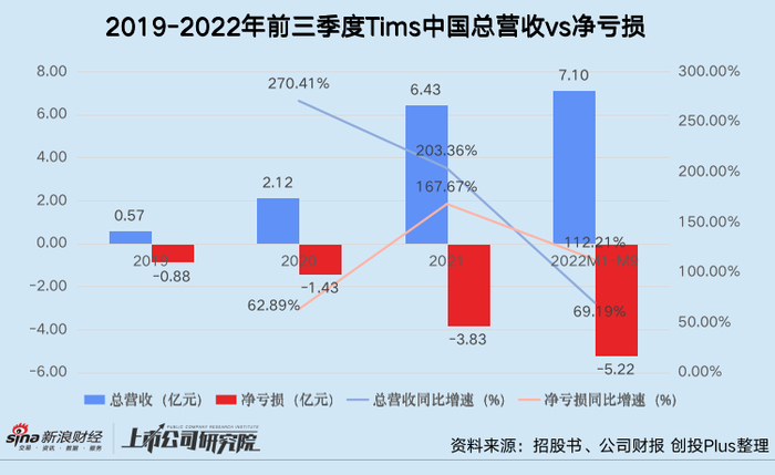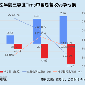 不过,跑马圈地带动营收增长的风光背后,Tims中国仍未走出亏损泥沼。仅第三季度的三个月期间,公司净亏损就高达1.95亿元,同比扩大72.57%。结合此前招股书披露的信息,入华3年,Tims中国共计亏损超11亿元,2022年前三季度亏损规模已是2021年全年的1.36倍。