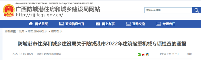 广西防城港市住房和城乡建设局关于防城港市2022年建筑起重机械专项检查的通报