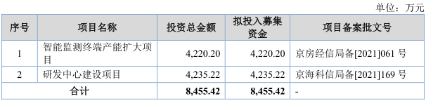 扣除发行费用后,资金将主要用于智能监测终端产能扩大项目与研发中心建设项目。具体来看: