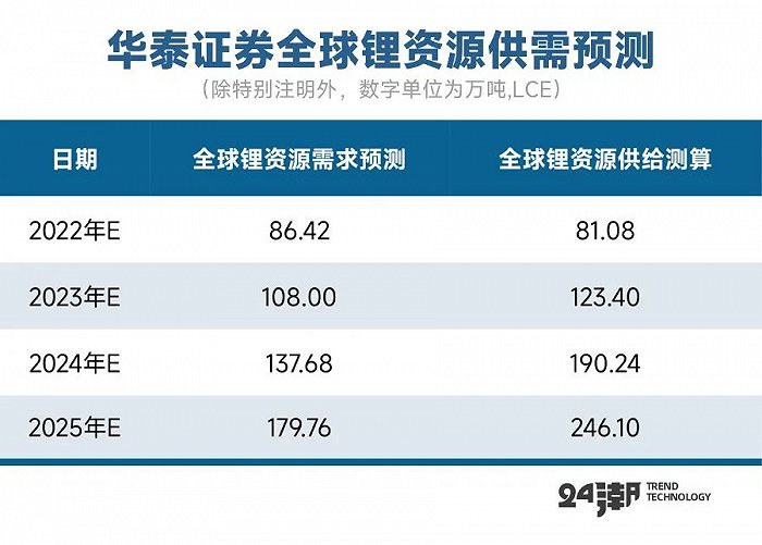 华泰证券在10月中旬发布研报称,23-25年锂行业供需大概率恶化,即供给大于需求,这意味着行业整体或面临业绩下滑的困境。