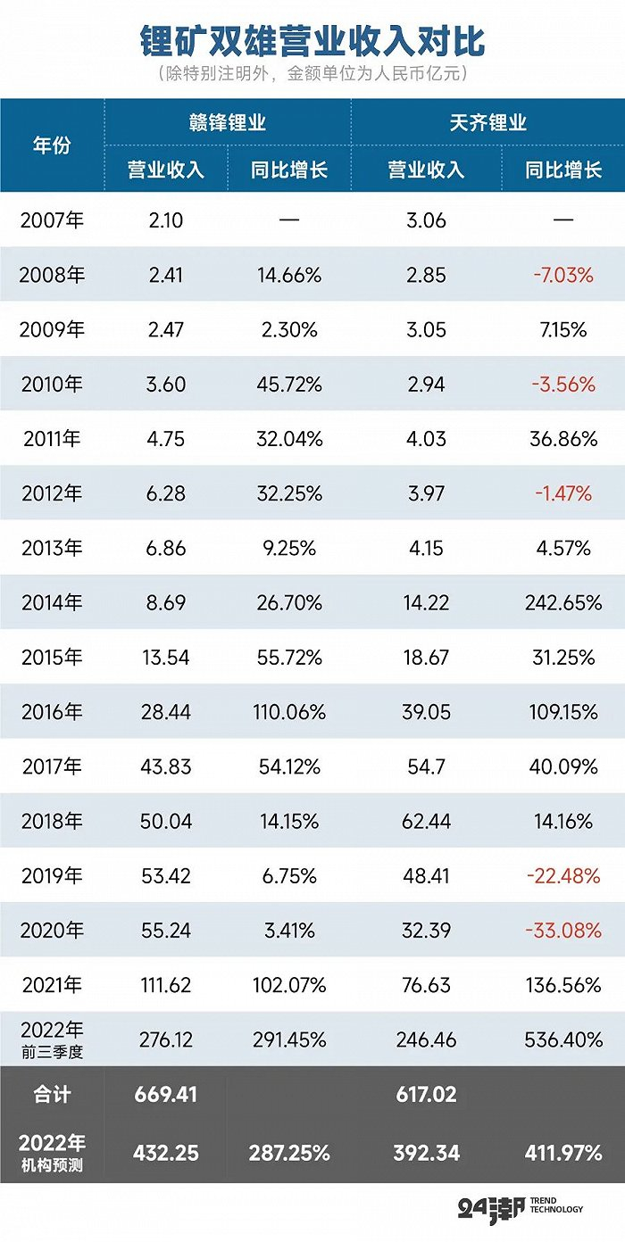 而在过去十五年中,天齐锂业营收规模至少在五个年度出现下降,持续增长力要明显低于赣锋锂业。