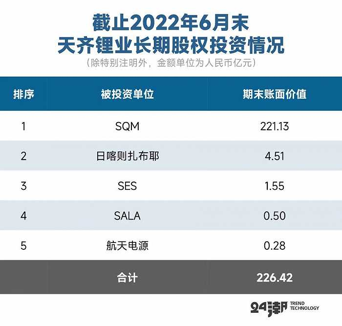 比如天齐锂业联营公司SQM 2022年半年度业绩同比大幅增长,天齐锂业在2022年上半年确认的对该联营公司的投资收益为23.26亿元。