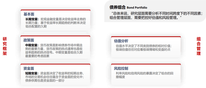 “基本面是慢变量,它可以从相对长期的维度告诉你方向在哪里,而央行举措直接影响到债券市场的流动性,是连接宏观变量和微观市场结构的桥梁,所以对政策面的研究是研究框架中重要的一部分,决定了对中期市场的判断。”罗远航表示。