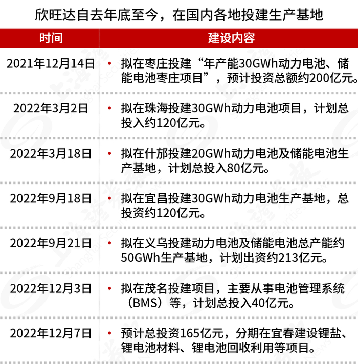 上海证券报记者注意到,欣旺达有别于其他企业,从去年年底至今,先后拟在枣庄、珠海、什邡、义乌、宜昌、宜春等地投建动力电池项目,计划投资金额累计近千亿元。