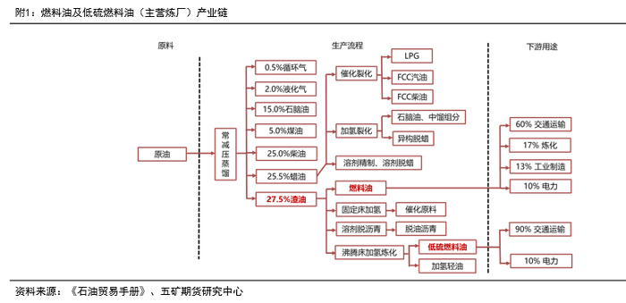 渣油加工生产下游产品的比例主要通过各产品的经济性来决定,目前生产低硫燃料油可以获得更高的利润,刺激炼厂加大低硫燃料油的产出。