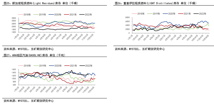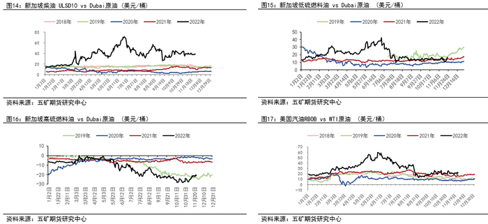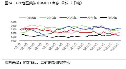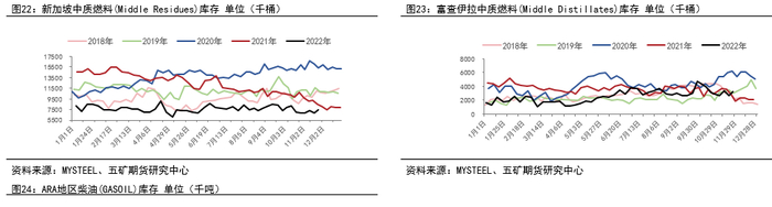 炼厂于四季度进入检修季,柴油、航煤等中馏组分库存均出现明显下降,新加坡和欧洲柴油库存于2022年以来均维持历史低位水平运行,但存在累库预期。