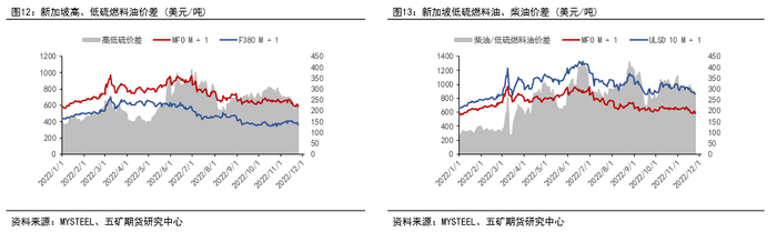 2022年由于石油市场的结构性矛盾,高低硫燃料油基本面呈现出“低硫强、高硫弱”的分化格局,在此环境下高低硫燃油价差一直处于高位区间。