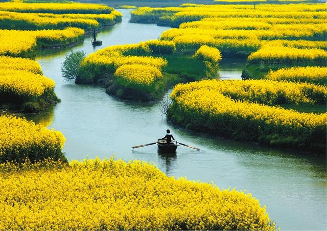 自古名山大川皆不乏文人墨客的足迹与赞咏,里下河平原上的兴化垛田虽称不上奇山异水,却以其质朴奇特的田园风光引得诸多文人墨客为之魂牵梦绕。垛田虽有人工垒造的痕迹,却又“清水出芙蓉,天然去雕饰”,难怪有人将其比拟为何仙姑撒落人间的片片花瓣。正如明代福建提学副使胡献(兴化人)《秀色引》一文所云:“其澄渊高阜之处,日月云霞升沉散合,为吾邑奇观。”清代戏曲家孔尚任在目睹垛田春日美景后,亦久难忘怀,写信给他的好友兴化王熹儒说:“昭阳(兴化别称)城外,菜花黄否?去年风景,结想魂梦,不知何时驾小艇、泛轻波,晤足下于黄金世界,一饱穷眼也。”