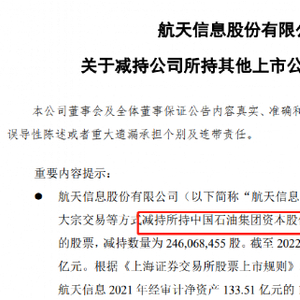 千亿中字头大牛股,突发利空!航天信息减持中油资本股票,持股6年拟一把清仓,投资6年累计收益率约14.5%