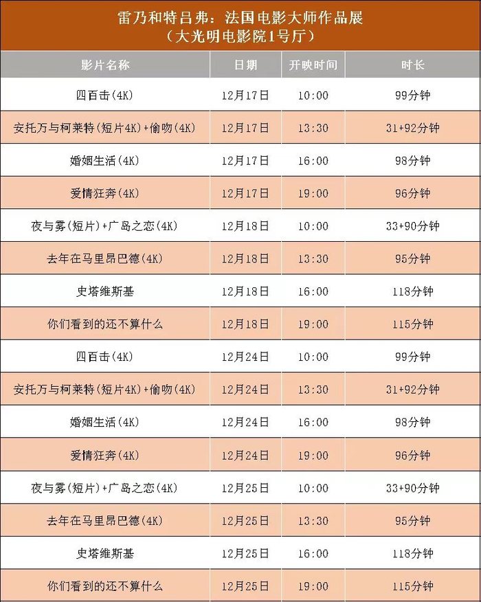 由上海国际电影节策划的“雷乃和特吕弗:法国电影大师展”12月7日宣布了影展消息。今年是法国电影导演、电影评论家弗朗索瓦·特吕弗的90周年诞辰。他于1932年在巴黎导演的电影《四百击》,开启了法国电影的新浪潮,之后拍摄了一系列获得高度赞誉的作品。他是法国新浪潮的领军人物,也是电影史上最重要的导演之一。2012年,上海国际电影节为纪念特吕弗诞辰80周年,在“向大师致敬”单元中放映过他的《四百击》《朱尔与吉姆》《爱情狂奔》《最后一班地铁》《隔墙花》《情杀案中案》等代表作。