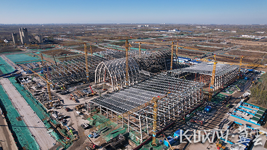 廊坊临空国际会展中心建设现场。