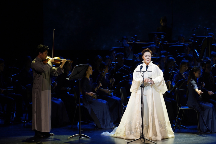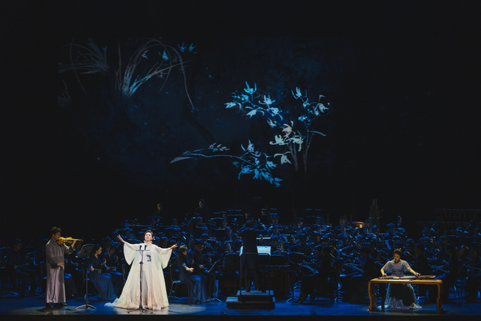 在此之前,为了方便巡演,音乐会上的曲目都是搭配五六人的小乐队,小巧又精致。如今,台上不仅坐着上百号人的上海音乐学院民族管弦乐团,还有指挥家吴强坐镇,规模前所未有得盛大。