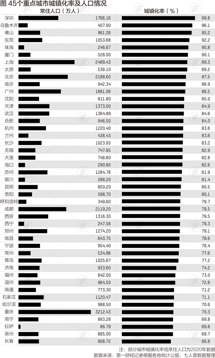 45个重点城市城镇化率:这六个城市超90%