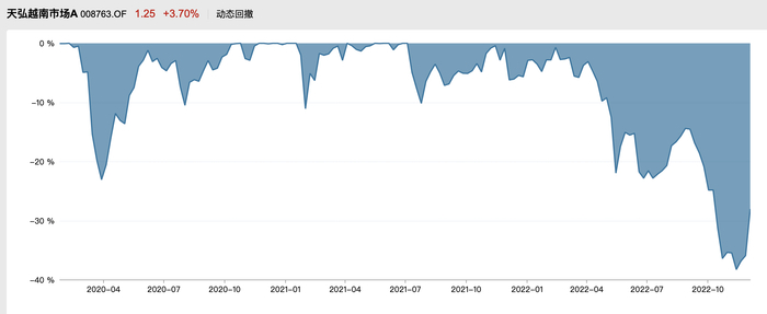 国内目前唯一一只布局越南的QDII——天弘越南市场,今年以来跌幅已有23.17%(截至12月5日),11月较前期高点的回撤超35%。而该基金去年的涨幅高达40%,位列QDII基金第二位。