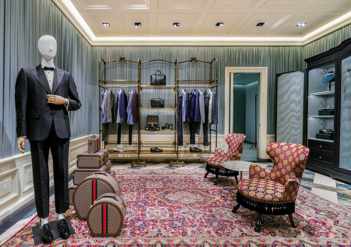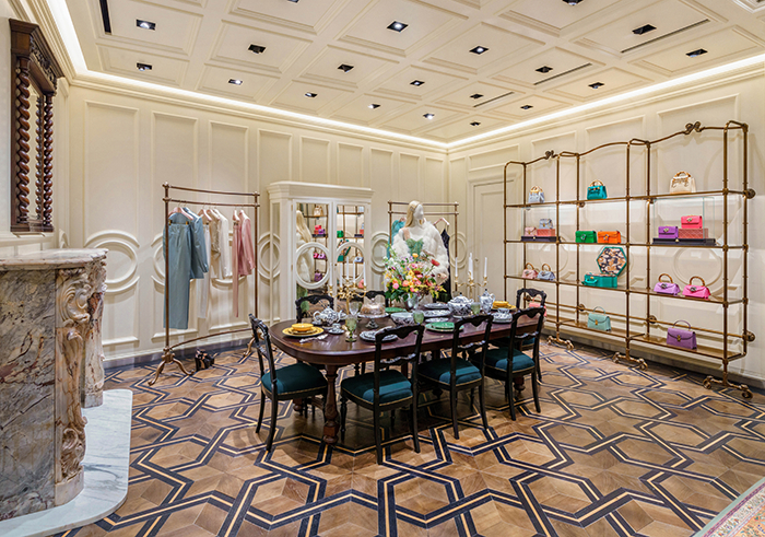 店铺空间内展现包括男女成衣、手袋、皮具、鞋履、珠宝腕表、配饰、香氛、以及Gucci Décor家饰系列。以亮眼色彩呈现的珍稀材质手袋,以及麻将等生活方式作品为店铺专享,与店铺三层空间内来自不同时期与地区的古董家具一起,展现多元奢华的风格灵感。