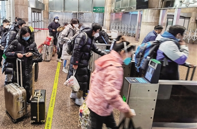 新京报讯 (记者裴剑飞)根据国务院和北京市的防疫要求,目前,北京已不再查验进返京人员的核酸检测阴性证明和健康码。12月8日上午,记者在北京西站看到,受新政策影响,出京客流有所增长,虽然优化了防疫措施,旅客的防护意识却并没有放松。