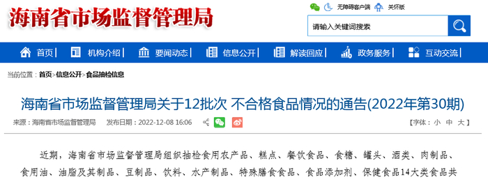 海南省市场监管局抽检糕点42批次 合格40批次