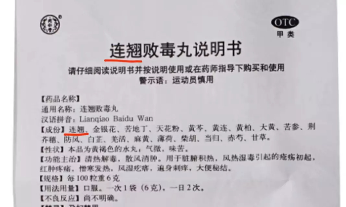 所谓君药,就是针对主病或主证起主要治疗作用的药物。是方中不可或缺,且药力居首的药物。连翘败毒丸中,连翘就是君药。图源:叮当快药截图