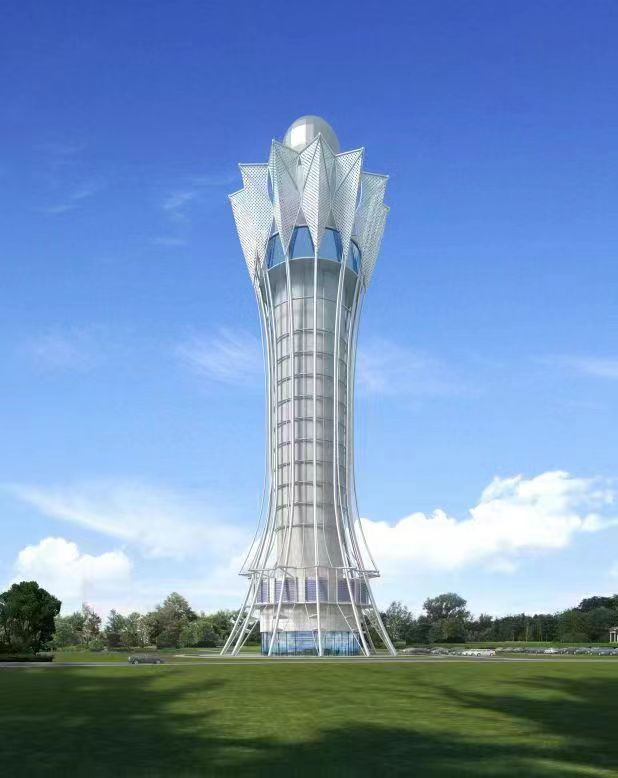 据介绍,雷达塔核心筒为建筑高度97.6米的圆形钢筋混凝土剪力墙结构,建筑面积2304平方米,外尺寸为直径15.4米。内部楼板标准层高度为12.2米,外部钢结构高度为95.9米,塔身钢结构外形呈双曲线变化,整体采用12根主立柱,16道环形横梁及次立柱组成。