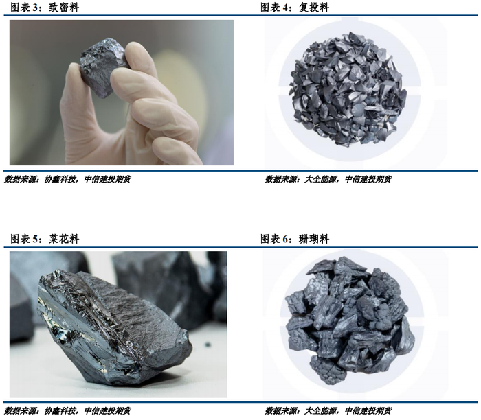 按表面质量分类,多晶硅又可分为致密料、菜花料、珊瑚料和复投料。